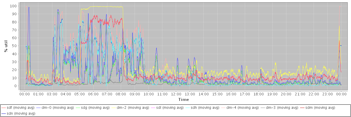 avg(sdf) = 18.57 avg(dm-0) = 14.97 avg(sdg) = 12.30 avg(dm-2) = 27.23 avg(sdl) = 18.56 avg(sdh) = 15.69 avg(dm-4) = 20.27 avg(dm-3) = 2.90 avg(sdm) = 12.30 avg(sdn) = 15.71