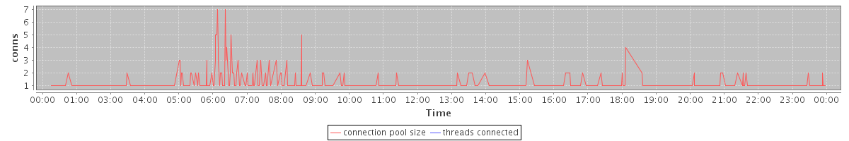 avg(connection pool size) = 0.35 avg(threads connected) = 0.00