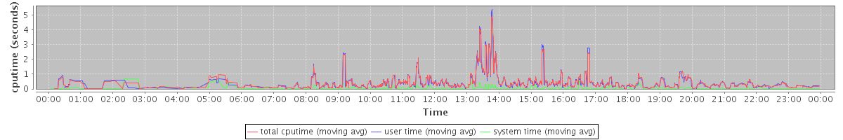 avg(mysqld) = 224.49 avg(httpd) = 26.82 avg(mysqldump) = 344.40 avg(zmmailboxd) = 3424.63 avg(tripwire) = 806.36 avg(updatedb) = 47.94 avg(service) = 47.00 avg(java) = 601.48 avg(gzip) = 2805.55 avg(zmcompresslogs) = 1384.50