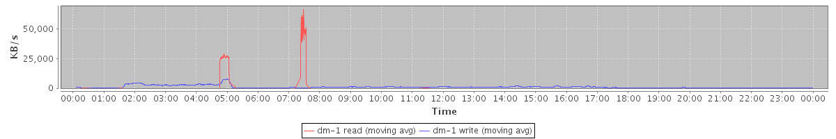 avg(dm-1 read) = 11.78 avg(dm-1 write) = 56.31