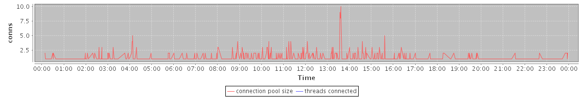 avg(connection pool size) = 0.53 avg(threads connected) = 0.00
