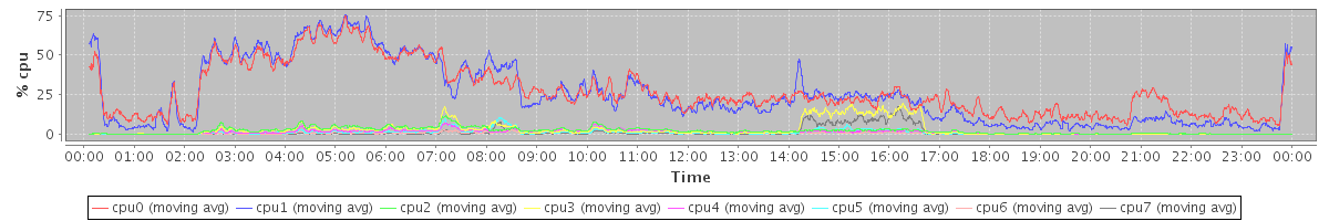 avg(cpu0) = 1.68 avg(cpu1) = 1.29 avg(cpu2) = 1.16 avg(cpu3) = 0.85 avg(cpu4) = 0.97 avg(cpu5) = 0.57 avg(cpu6) = 0.65 avg(cpu7) = 0.41