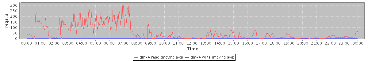 avg(dm-1 read) = 0.20 avg(dm-1 write) = 363.40