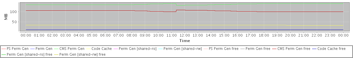 avg(PS Perm Gen) = 0.00 avg(Perm Gen) = 0.00 avg(CMS Perm Gen) = 136.77 avg(Code Cache) = 34.36 avg(Perm Gen [shared-ro]) = 0.00 avg(Perm Gen [shared-rw]) = 0.00 avg(PS Perm Gen free) = 0.00 avg(Perm Gen free) = 0.00 avg(CMS Perm Gen free) = 104.07 avg(Code Cache free) = 12.26 avg(Perm Gen [shared-ro] free) = 0.00 avg(Perm Gen [shared-rw] free) = 0.00