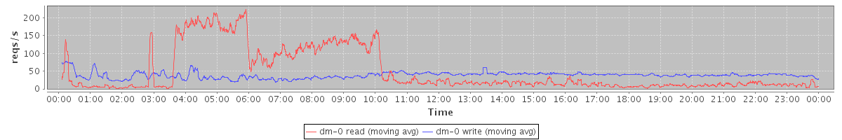 avg(dm-1 read) = 1203.11 avg(dm-1 write) = 164.55