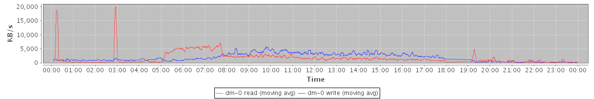 avg(dm-1 read) = 19.30 avg(dm-1 write) = 325.63