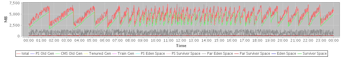 avg(total) = 4737.44 avg(PS Old Gen) = 0.00 avg(CMS Old Gen) = 3786.72 avg(Tenured Gen) = 0.00 avg(Train Gen) = 0.00 avg(PS Eden Space) = 0.00 avg(PS Survivor Space) = 0.00 avg(Par Eden Space) = 804.48 avg(Par Survivor Space) = 146.24 avg(Eden Space) = 0.00 avg(Survivor Space) = 0.00