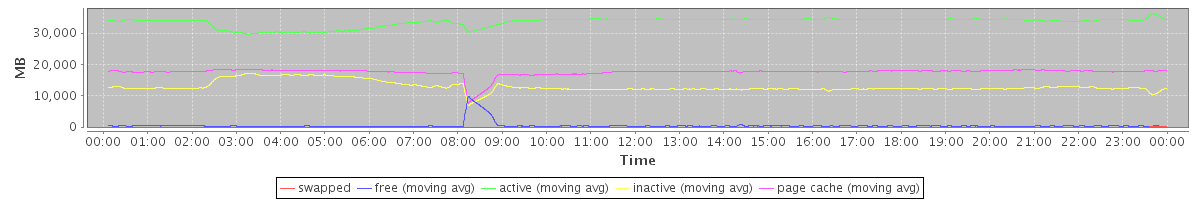 avg(swapped) = 0.01 avg(free) = 487.73 avg(active) = 33490.35 avg(inactive) = 12900.71 avg(page cache) = 17523.49