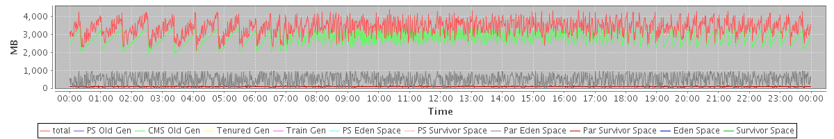 avg(total) = 3388.38 avg(PS Old Gen) = 0.00 avg(CMS Old Gen) = 2798.44 avg(Tenured Gen) = 0.00 avg(Train Gen) = 0.00 avg(PS Eden Space) = 0.00 avg(PS Survivor Space) = 0.00 avg(Par Eden Space) = 496.47 avg(Par Survivor Space) = 93.47 avg(Eden Space) = 0.00 avg(Survivor Space) = 0.00