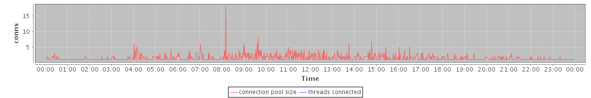 avg(connection pool size) = 0.99 avg(threads connected) = 0.00