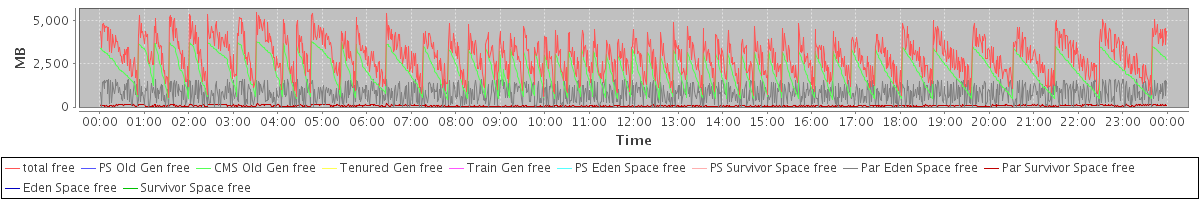 avg(total free) = 2943.90 avg(PS Old Gen free) = 0.00 avg(CMS Old Gen free) = 2061.35 avg(Tenured Gen free) = 0.00 avg(Train Gen free) = 0.00 avg(PS Eden Space free) = 0.00 avg(PS Survivor Space free) = 0.00 avg(Par Eden Space free) = 812.91 avg(Par Survivor Space free) = 69.64 avg(Eden Space free) = 0.00 avg(Survivor Space free) = 0.00