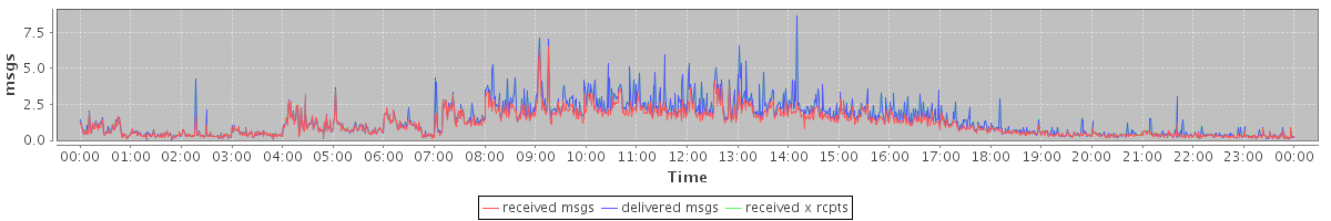 avg(received msgs) = 1.15 avg(delivered msgs) = 1.40 avg(received x rcpts) = 1.41