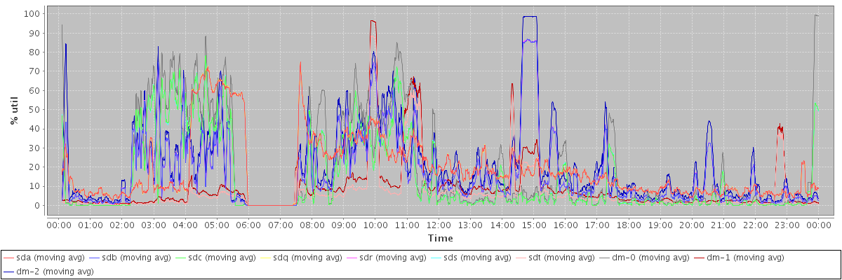 avg(sda) = 18.43 avg(sdb) = 16.04 avg(sdc) = 13.78 avg(sdq) = 18.46 avg(sdr) = 16.04 avg(sds) = 13.81 avg(sdt) = 6.52 avg(dm-0) = 18.47 avg(dm-1) = 8.74 avg(dm-2) = 20.05