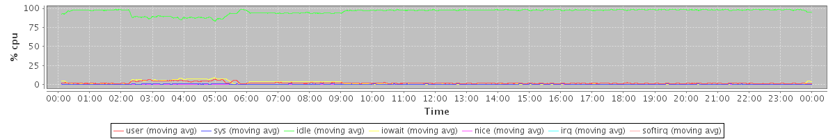 avg(user) = 2.05 avg(sys) = 0.34 avg(idle) = 95.89 avg(iowait) = 1.69 avg(nice) = 0.00 avg(irq) = 0.00 avg(softirq) = 0.02