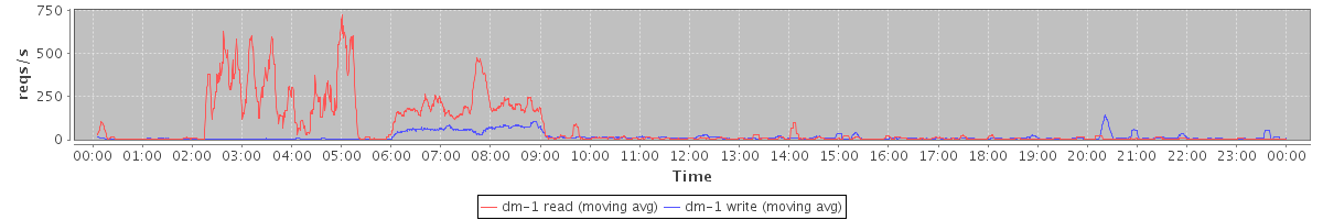 avg(dm-1 read) = 1376.86 avg(dm-1 write) = 165.74