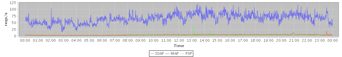 Host zm05.stanford.edu: Mailboxd: Request Rate by Client Protocol