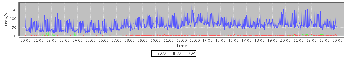 Host zm09.stanford.edu: Mailboxd: Request Rate by Client Protocol