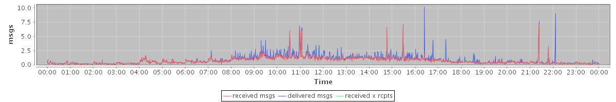 avg(received msgs) = 0.70 avg(delivered msgs) = 0.85 avg(received x rcpts) = 0.86