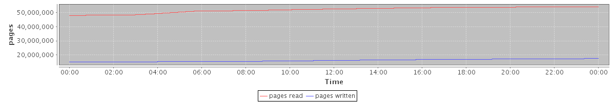 avg(pages read) = 51915284.94 avg(pages written) = 16154926.62