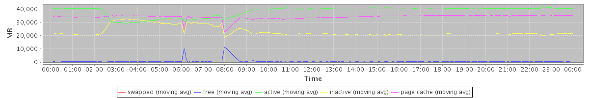 avg(swapped) = 2.50 avg(free) = 701.48 avg(active) = 38418.60 avg(inactive) = 23330.05 avg(page cache) = 34208.93