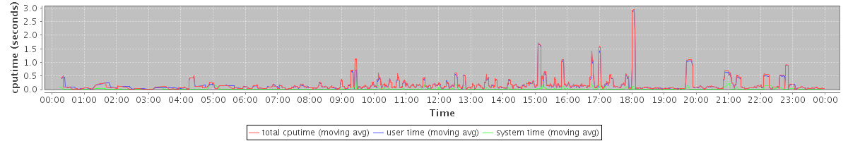avg(total cputime) = 0.10 avg(user time) = 0.10 avg(system time) = 0.01