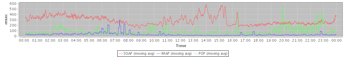 Host zm02.stanford.edu: Mailboxd: Response Time by Client Protocol