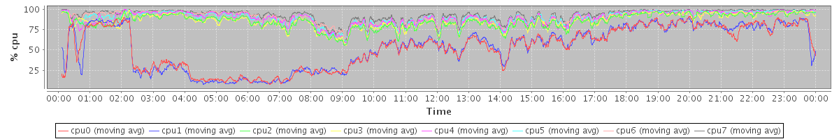 avg(cpu0) = 1.65 avg(cpu1) = 1.54 avg(cpu2) = 1.28 avg(cpu3) = 1.22 avg(cpu4) = 1.04 avg(cpu5) = 0.92 avg(cpu6) = 0.72 avg(cpu7) = 0.63