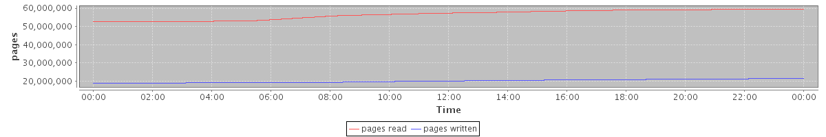 avg(pages read) = 56582904.45 avg(pages written) = 20109237.68
