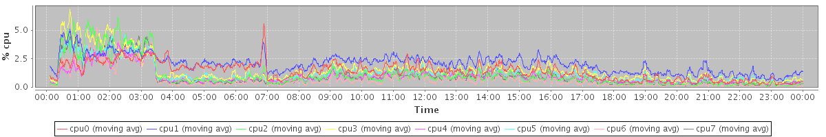 avg(cpu0) = 0.28 avg(cpu1) = 0.49 avg(cpu2) = 0.18 avg(cpu3) = 0.28 avg(cpu4) = 0.16 avg(cpu5) = 0.23 avg(cpu6) = 0.11 avg(cpu7) = 0.16