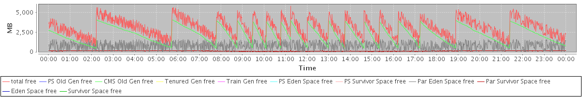 avg(total free) = 3116.94 avg(PS Old Gen free) = 0.00 avg(CMS Old Gen free) = 2201.52 avg(Tenured Gen free) = 0.00 avg(Train Gen free) = 0.00 avg(PS Eden Space free) = 0.00 avg(PS Survivor Space free) = 0.00 avg(Par Eden Space free) = 798.89 avg(Par Survivor Space free) = 116.53 avg(Eden Space free) = 0.00 avg(Survivor Space free) = 0.00