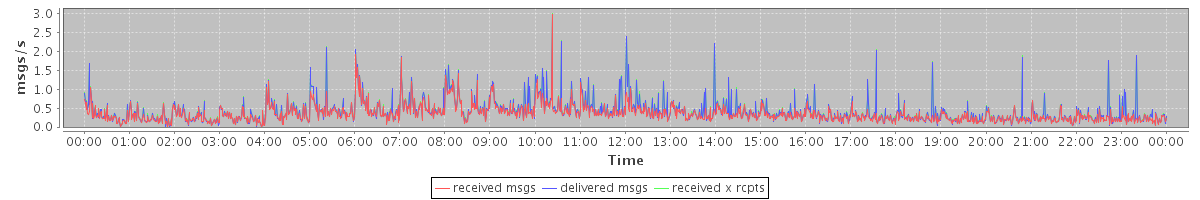 avg(received msgs) = 0.35 avg(delivered msgs) = 0.40 avg(received x rcpts) = 0.41