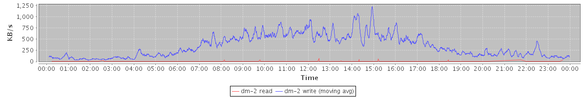 avg(dm-1 read) = 2828.41 avg(dm-1 write) = 657.47