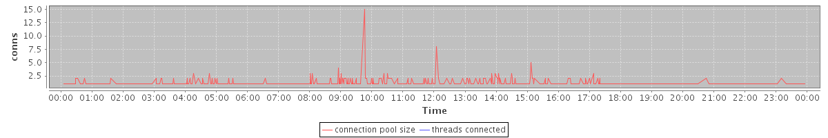 avg(connection pool size) = 0.43 avg(threads connected) = 0.00