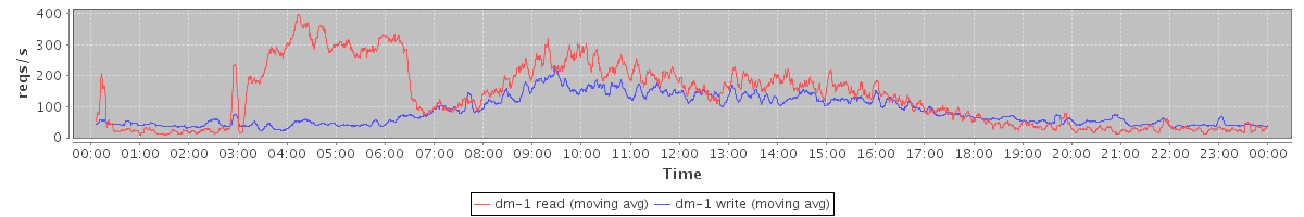 avg(dm-0 read) = 958.74 avg(dm-0 write) = 1205.87