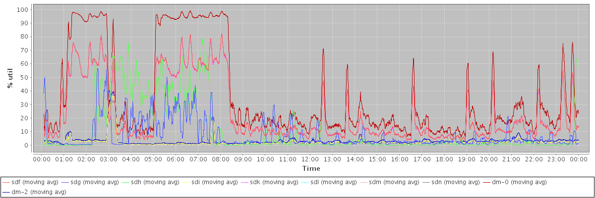 avg(dm-1 read) = 0.07 avg(dm-1 write) = 0.74