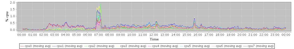 avg(cpu0) = 0.16 avg(cpu1) = 0.23 avg(cpu2) = 0.08 avg(cpu3) = 0.16 avg(cpu4) = 0.10 avg(cpu5) = 0.14 avg(cpu6) = 0.03 avg(cpu7) = 0.10