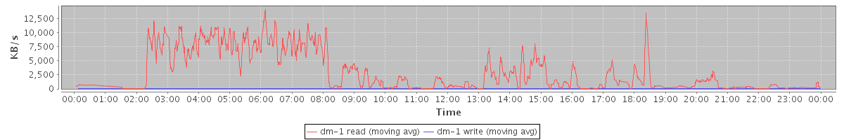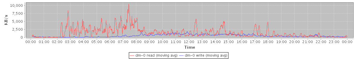 avg(dm-1 read) = 2396.74 avg(dm-1 write) = 0.35