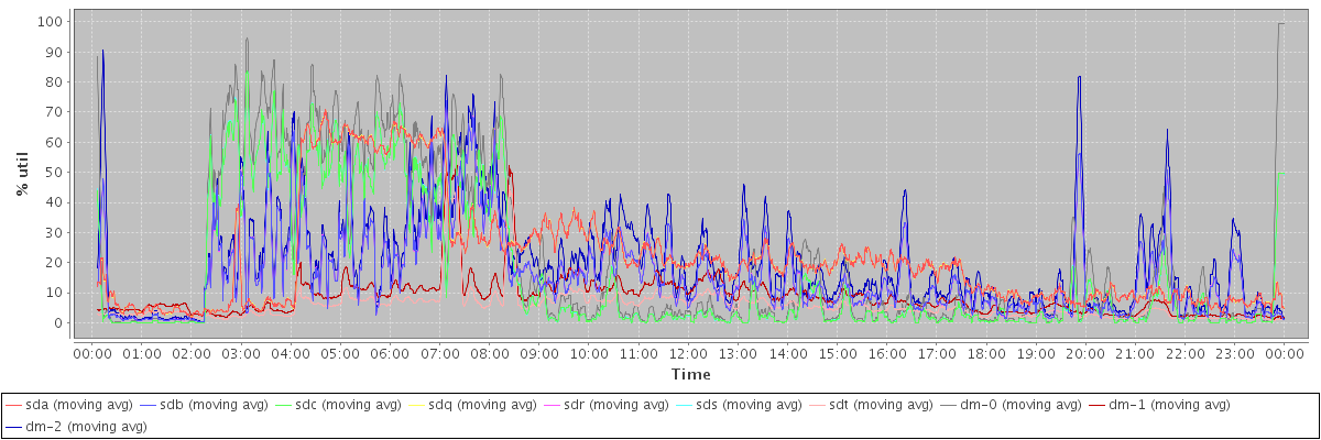 avg(sda) = 21.27 avg(sdb) = 15.88 avg(sdc) = 15.78 avg(sdq) = 21.27 avg(sdr) = 15.90 avg(sds) = 15.79 avg(sdt) = 5.66 avg(dm-0) = 20.63 avg(dm-1) = 8.50 avg(dm-2) = 20.29