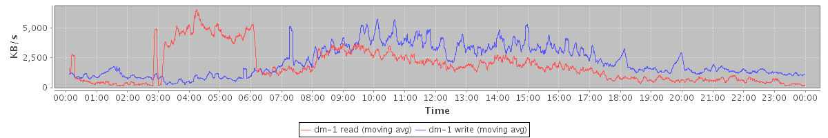avg(dm-1 read) = 1824.63 avg(dm-1 write) = 2204.41