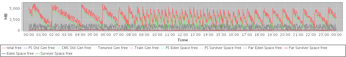 avg(total free) = 3199.27 avg(PS Old Gen free) = 0.00 avg(CMS Old Gen free) = 2323.00 avg(Tenured Gen free) = 0.00 avg(Train Gen free) = 0.00 avg(PS Eden Space free) = 0.00 avg(PS Survivor Space free) = 0.00 avg(Par Eden Space free) = 798.15 avg(Par Survivor Space free) = 78.11 avg(Eden Space free) = 0.00 avg(Survivor Space free) = 0.00