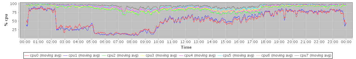 avg(cpu0) = 0.45 avg(cpu1) = 0.43 avg(cpu2) = 0.21 avg(cpu3) = 0.20 avg(cpu4) = 0.17 avg(cpu5) = 0.15 avg(cpu6) = 0.19 avg(cpu7) = 0.10