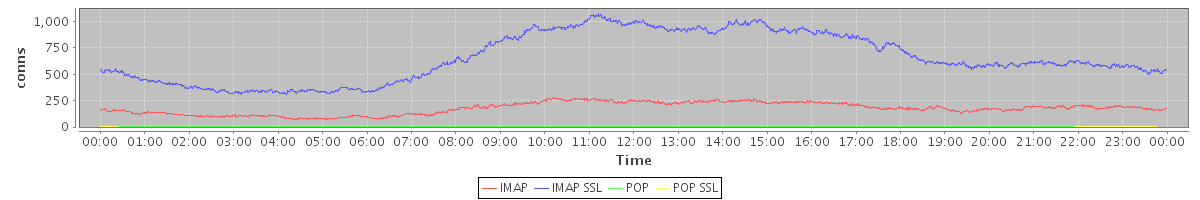 avg(IMAP) = 176.14 avg(IMAP SSL) = 657.60 avg(POP) = 0.07 avg(POP SSL) = 0.33