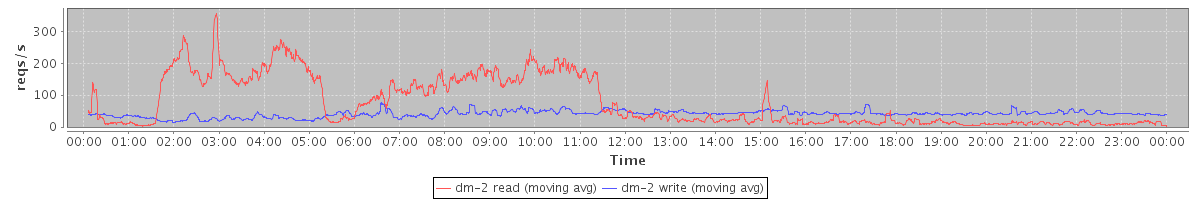 avg(dm-1 read) = 1695.44 avg(dm-1 write) = 210.89