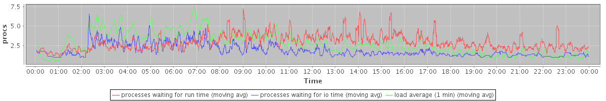 avg(processes waiting for run time) = 2.68 avg(processes waiting for io time) = 1.31 avg(load average (1 min)) = 2.76