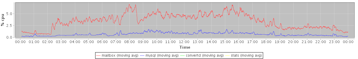 avg(mailbox) = 3.46 avg(mysql) = 0.69 avg(convertd) = 0.00 avg(stats) = 0.00