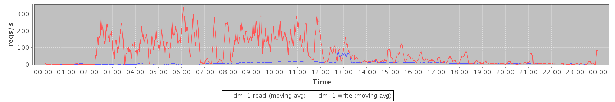 avg(dm-1 read) = 2678.11 avg(dm-1 write) = 320.01