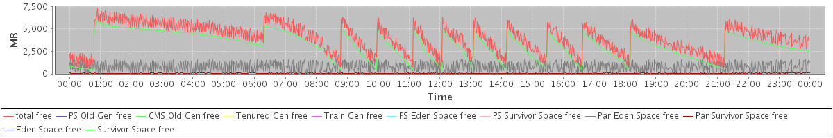 avg(total free) = 4004.12 avg(PS Old Gen free) = 0.00 avg(CMS Old Gen free) = 3153.24 avg(Tenured Gen free) = 0.00 avg(Train Gen free) = 0.00 avg(PS Eden Space free) = 0.00 avg(PS Survivor Space free) = 0.00 avg(Par Eden Space free) = 796.13 avg(Par Survivor Space free) = 54.75 avg(Eden Space free) = 0.00 avg(Survivor Space free) = 0.00