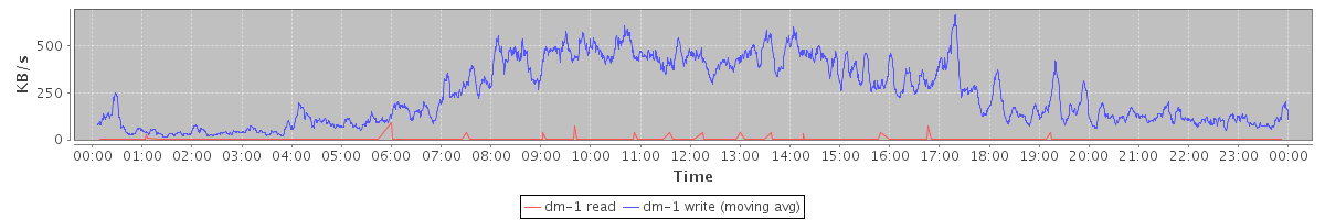 avg(dm-1 read) = 0.06 avg(dm-1 write) = 1.27