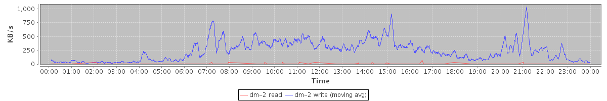 avg(dm-2 read) = 0.04 avg(dm-2 write) = 1.25