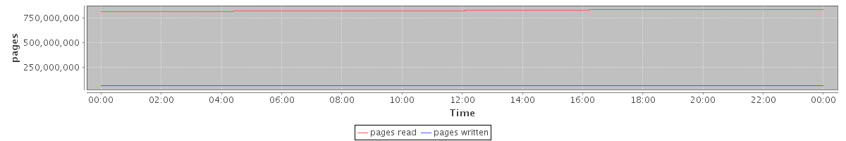 avg(pages read) = 827892489.31 avg(pages written) = 64128993.89